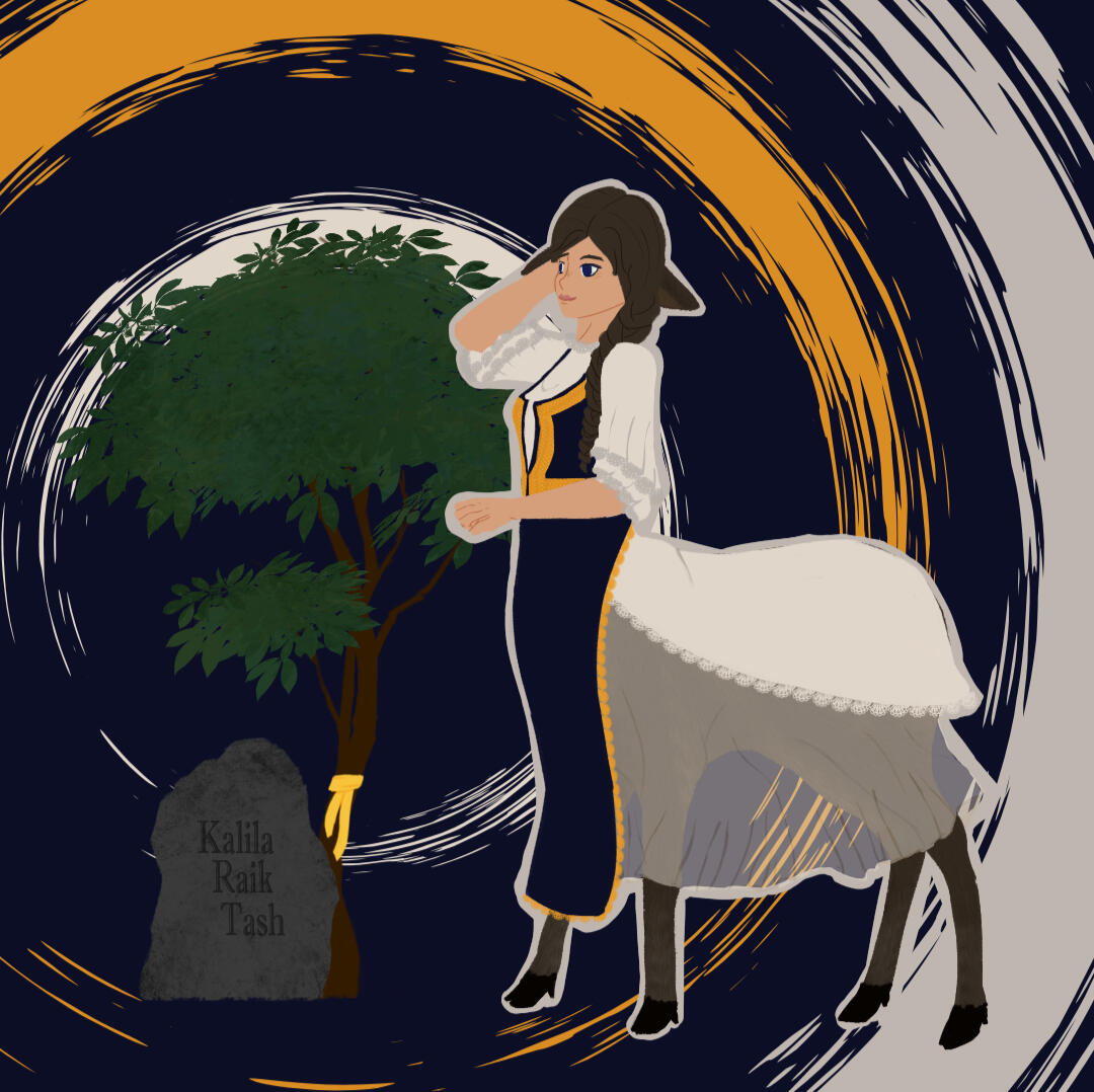 Being raised in a village in the continent of Belsir, she followed the footsteps of her grandparents and studied medicine.Kalila is caring in nature and sociable to a fault. She has a tendency to over-explain her diagnoses and the medicine require which leads to many being more confused than anything. Though outside of caring for a patient, she can be rather clumsy.She gets excited over some injuries, but does try to hold it in as she it aware that it's not too appropriate to show. Though when she is treating someone, she holds no mercy if they try to reject or do things when they should be resting.Deciding to completely follow the steps of her grandparents, she became a nomadic healer and traveled between the continents.That was what led her to meet her now husband, Lysander Tash, a taurfolk knight from Sauveil City in Leódad, Tirosa. She was helping the knights when she came across his patrol after they were attacked by raiders. They were married three years after, with a majority of that time being Lysander courting her and proposing often to her, with their first meeting begin the most memorable proposal.At some point, her and Lysander had decided moved to Monarca in Cantaruña, five years after her eldest son, who apart from tusks and faint chest stripes, took after his father in appearance, Cillian, was born. They both have heard impressive things about the ever-growing city. She became the medical chief while her husband became a guard general and one of Jacinto's most trusted generals. She proceeded to have three more children over the course of the years; Ramzi and Adil, twin boys who take after her in appearance, and her now youngest, Laila, who took after her father.Of course, she is rather used to the cold of the mountains she used to live in before all and is usually seen out at night enjoying the chill of the air. She absolutely hates too much heat, but tries hard to not complain. And due to her job as a doctor, she wears her hair up or braided. And she prefers to wear simple formal-like tunics that could be easily taken off or easily replaced in times of need, though does change into more noble-like wear when needed, such as meetings with the council or in the company of other nobles.She is usually seen in the hospital, and sometimes with her daughter being carried in a sling as she works. Though she will always try to spend time on her breaks to visit her husband and join him on lunch with her children.She and her family live in the west villa of Monarca.She was slightly disappointed when Cillian had chosen to take Jacinto's seat instead of hers when he turned fifteen and debuted, but was immensely proud of him as well. Since then, she had encouraged his training, but makes sure he is still well-versed in medical needs, stating that the best defense is great health.On the council, she represents the health of Monarca City and Cantaruña.